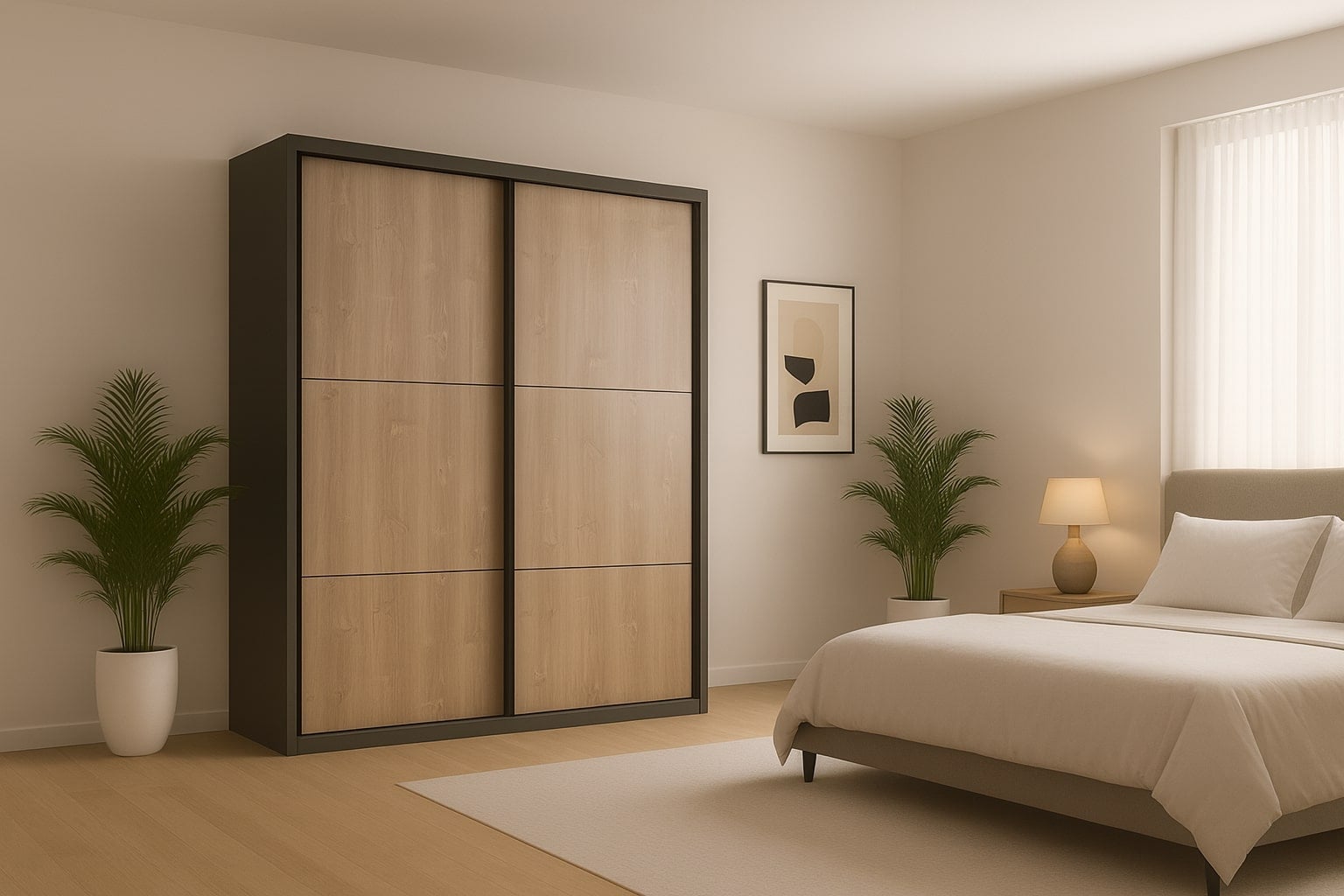 ארון הזזה עם 2 דלתות על מסילות גרמניות שקטות במיוחד.