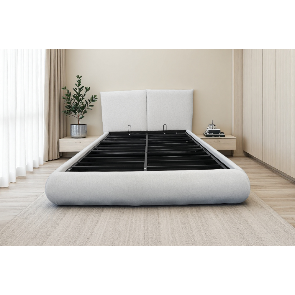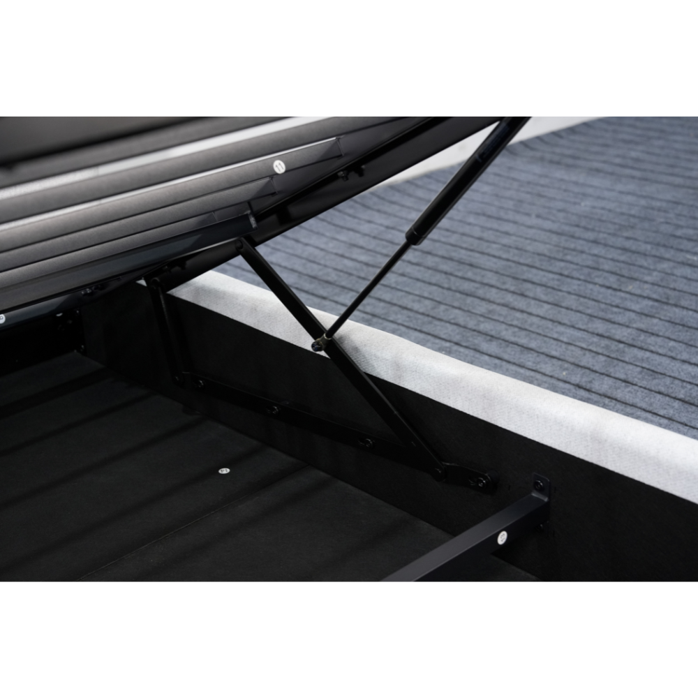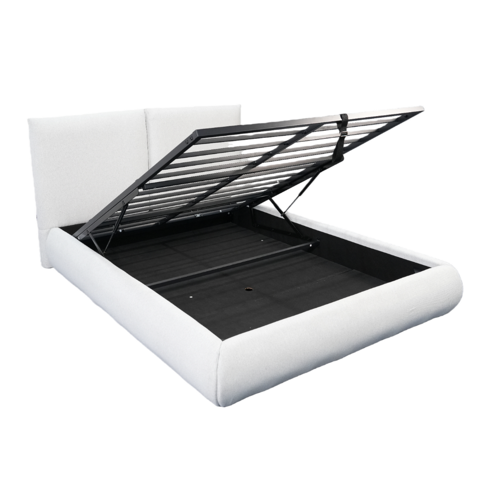 ארגז מצעים מובנה במיטה הוא חלק בלתי נפרד מהמבנה ומספק שטח אחסון גדול ונגיש.