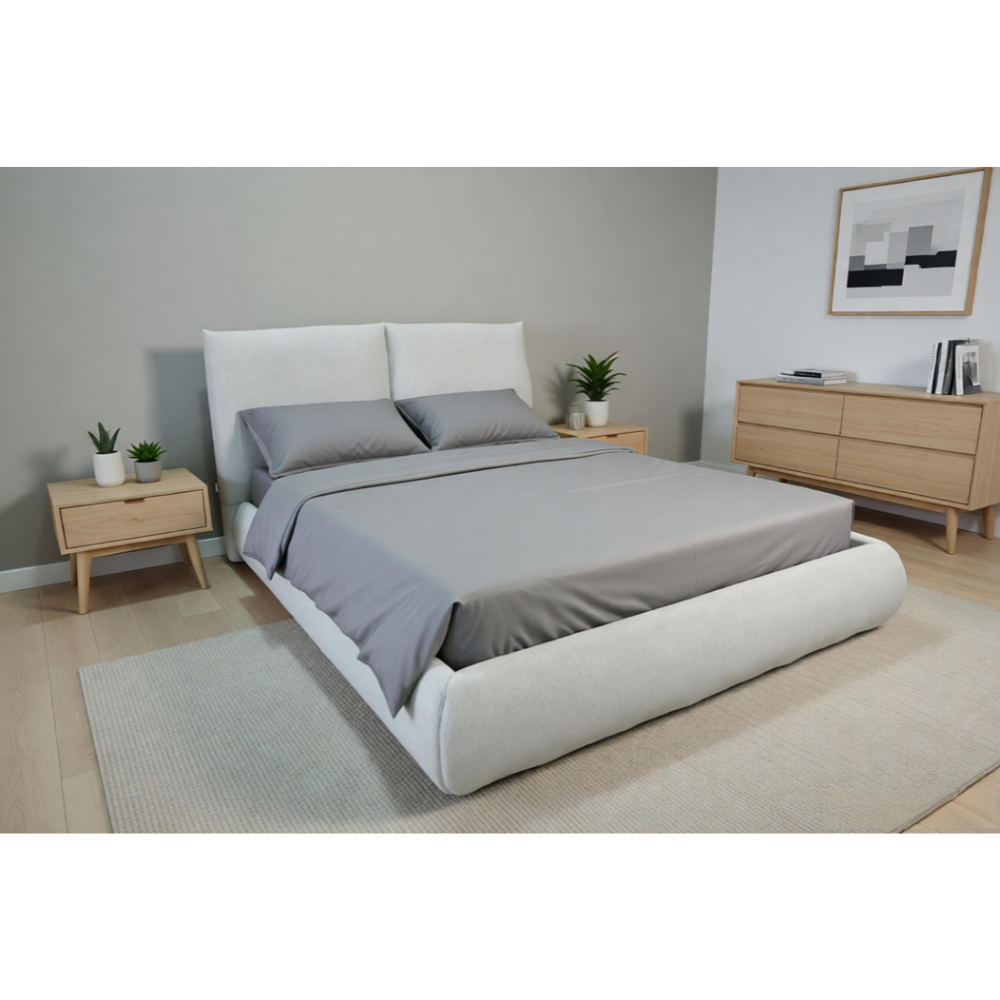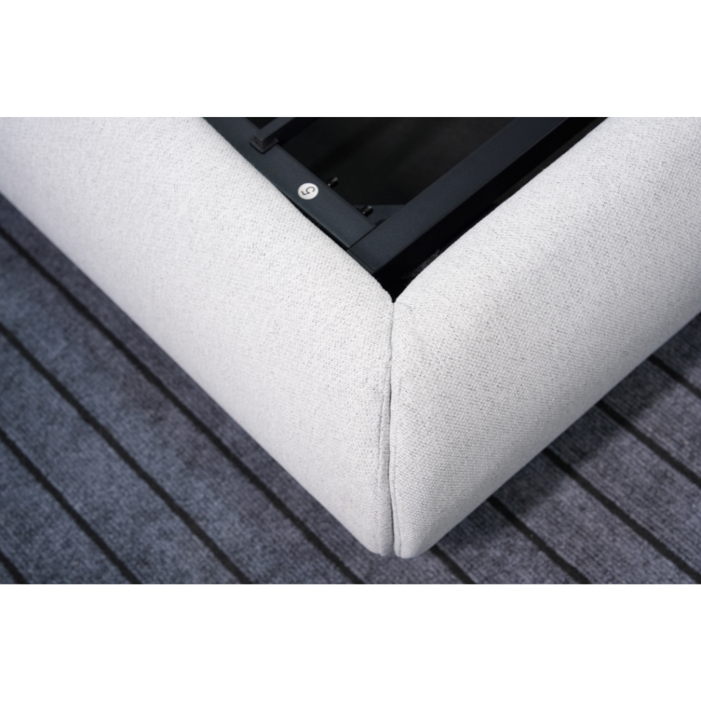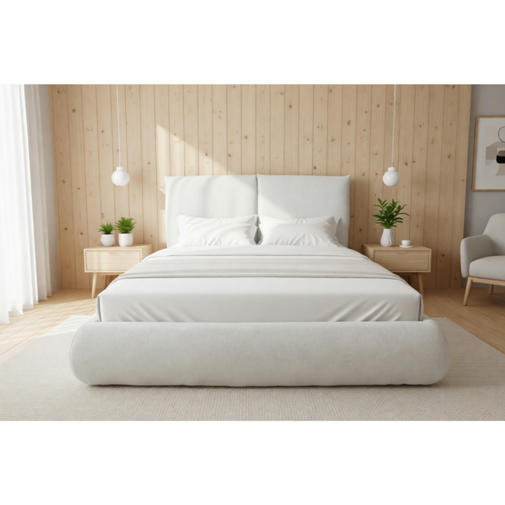 מיטה דגם סנו בצבע בז’ מרופדת בבד אריג איכותי ועמיד כוללת ראשי מיטה מתכווננים וארגז מצעים מובנה ומרווח שמציע פתרון אחסון פרקטי נוח וקל לשימוש תוך שמירה על מראה עיצובי נקי רך והרמוני בחדר השינה.