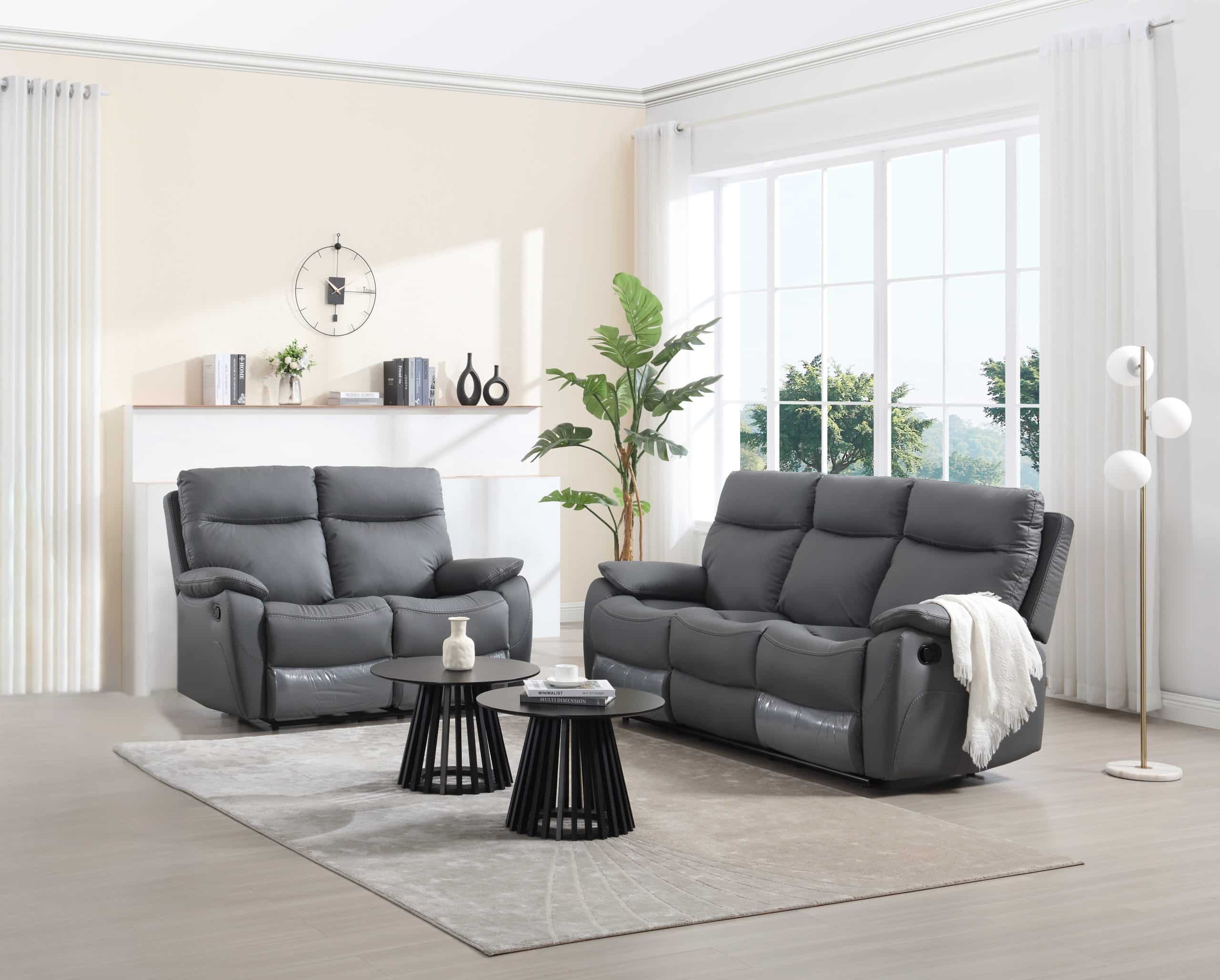 מערכת ישיבה דגם פיטארו עם ריקליינרים 3+2 בדמוי עור אפור כהה