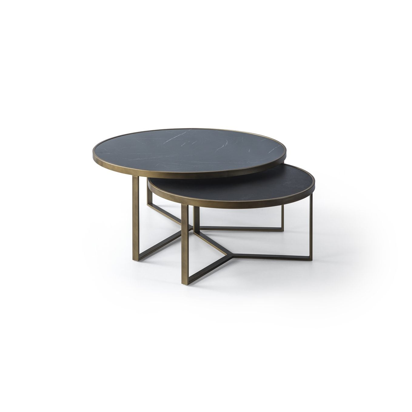 סט שולחנות לסלון דמוי שיש שחור מבריק + אלון שחור – דגם טיאגו