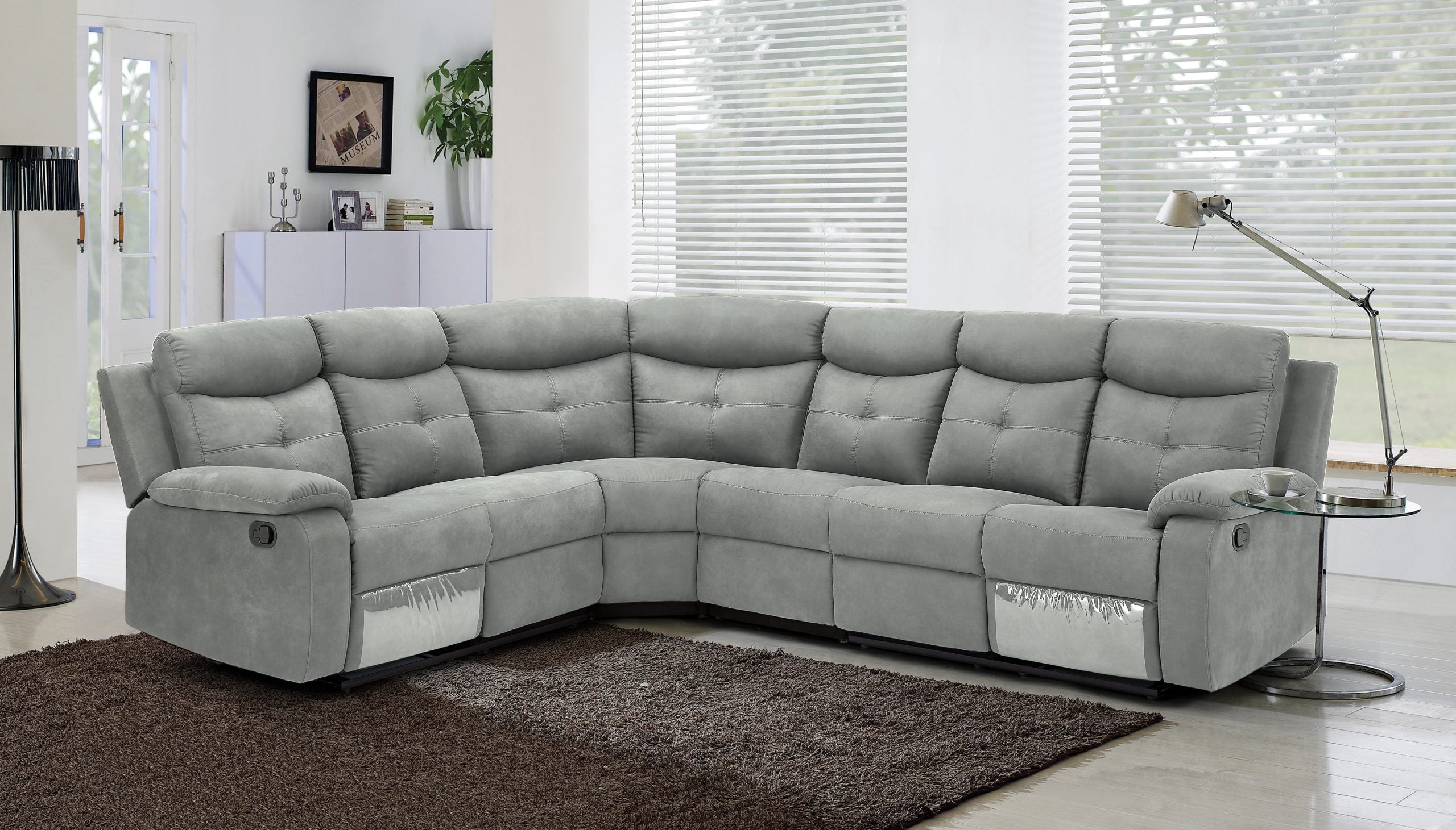 סלון פינתי מודולרי עם ריקליינרים דגם לג'נד באפור בהיר