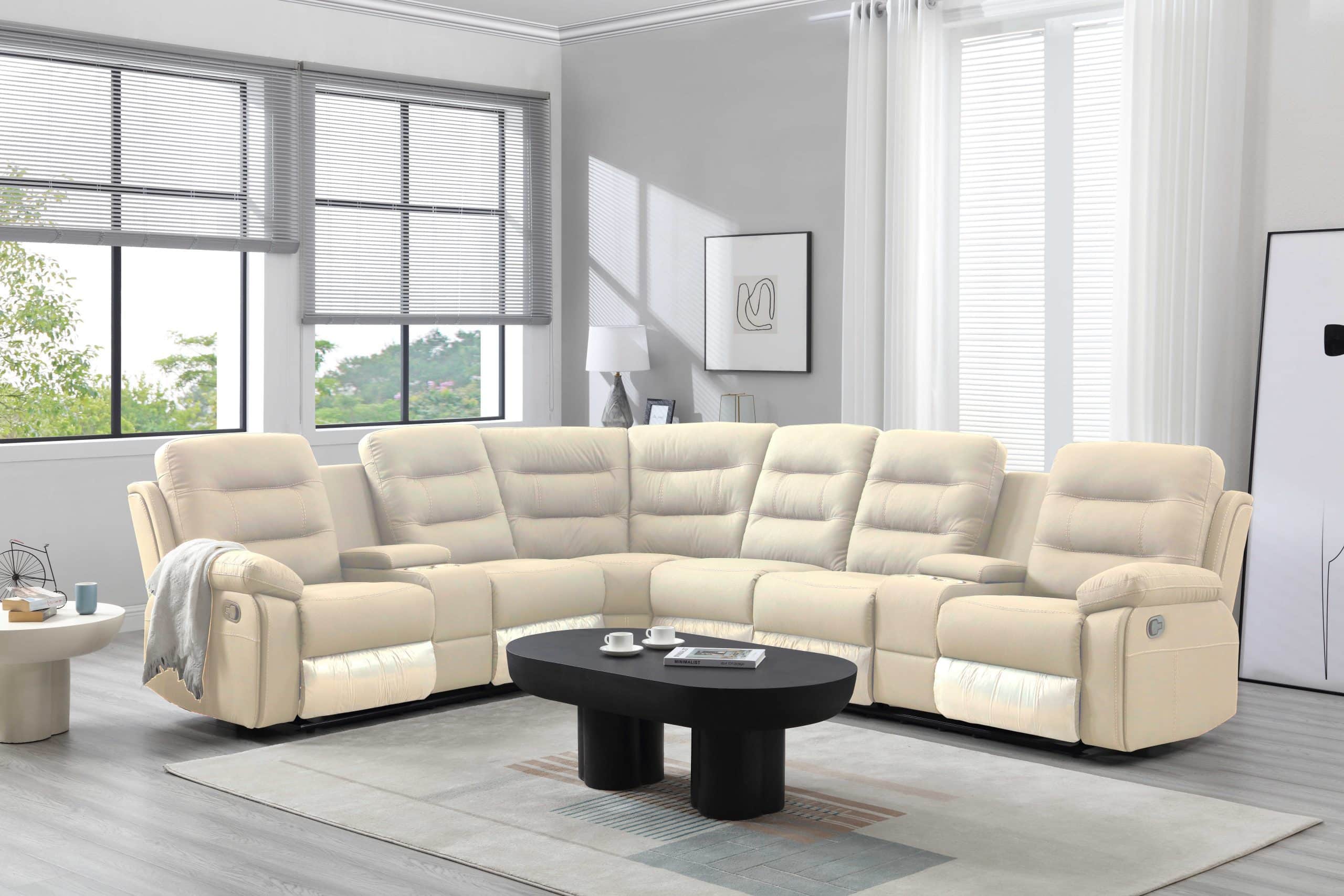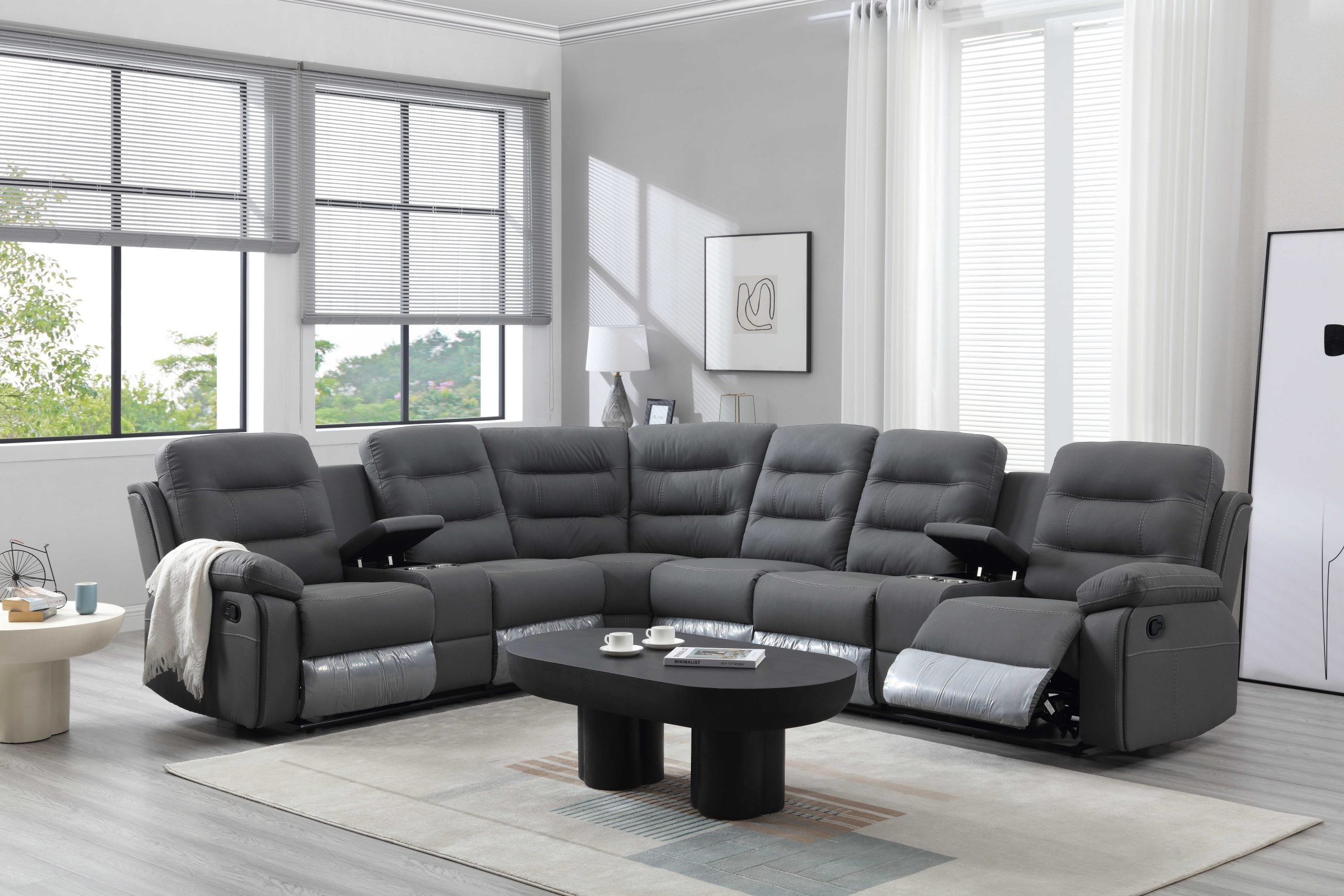 סלון פינתי מודולרי עם ריקליינרים דגם קולין דמוי עור בשלושה צבעים