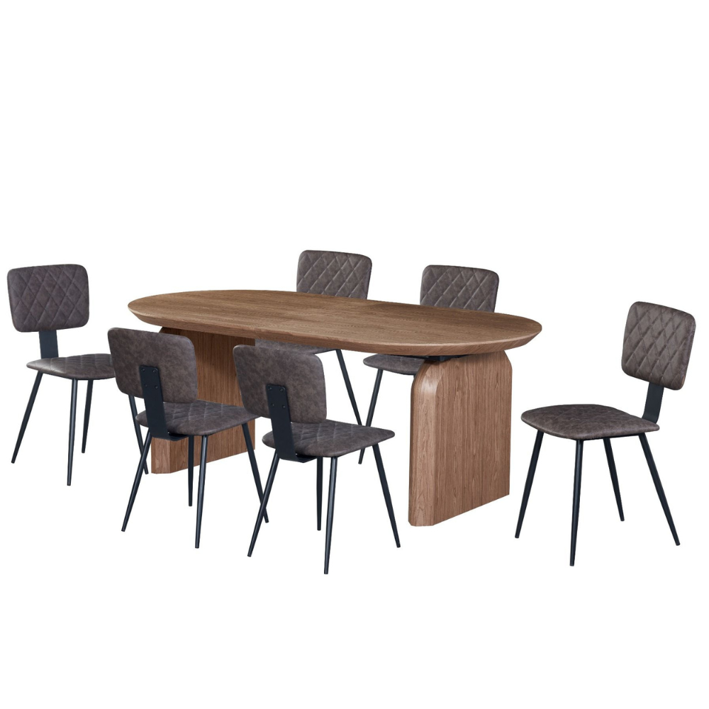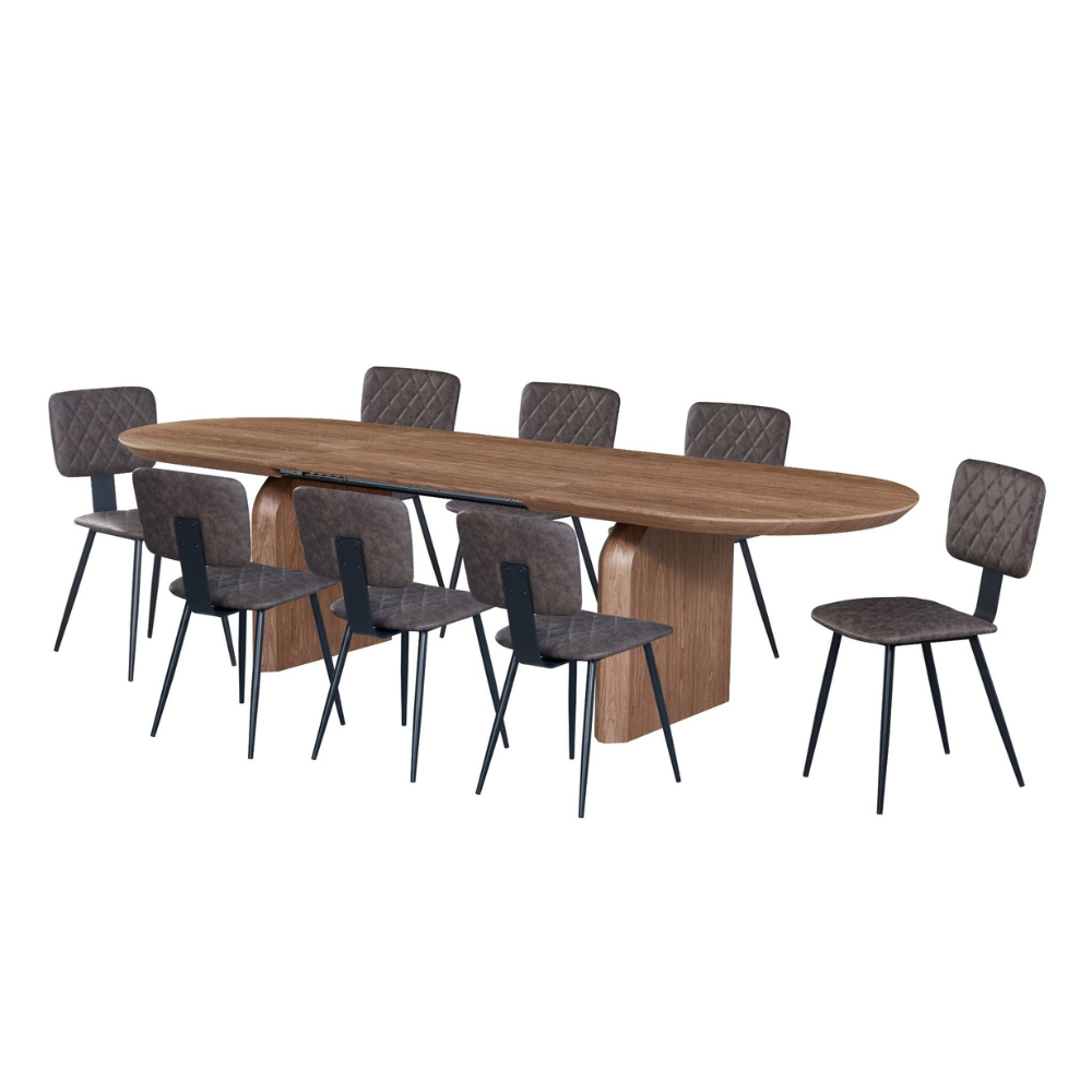 פינת אוכל אובלית נפתחת דגם טומסו + 6 כיסאות – אגוז אמריקאי – 12 סועדים