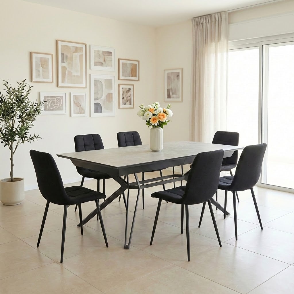שולחן האוכל נוברטו הוא פתרון מושלם לאירוח גדול, המשלב עיצוב מודרני מרשים עם פונקציונליות מתקדמת. השולחן עשוי MDF בציפוי למינציה איכותית, עמידה ל־חום ושריטות, ומתאימה לשימוש יומיומי אינטנסיבי. אורכו 2.00 מ’ וכולל 4 הארכות של 50 ס"מ כל אחת, כך שניתן להאריך אותו עד לאורך מרשים של 4.00 מ’ – אידיאלי לאירוח משפחתי רחב ולאירועים מיוחדים.