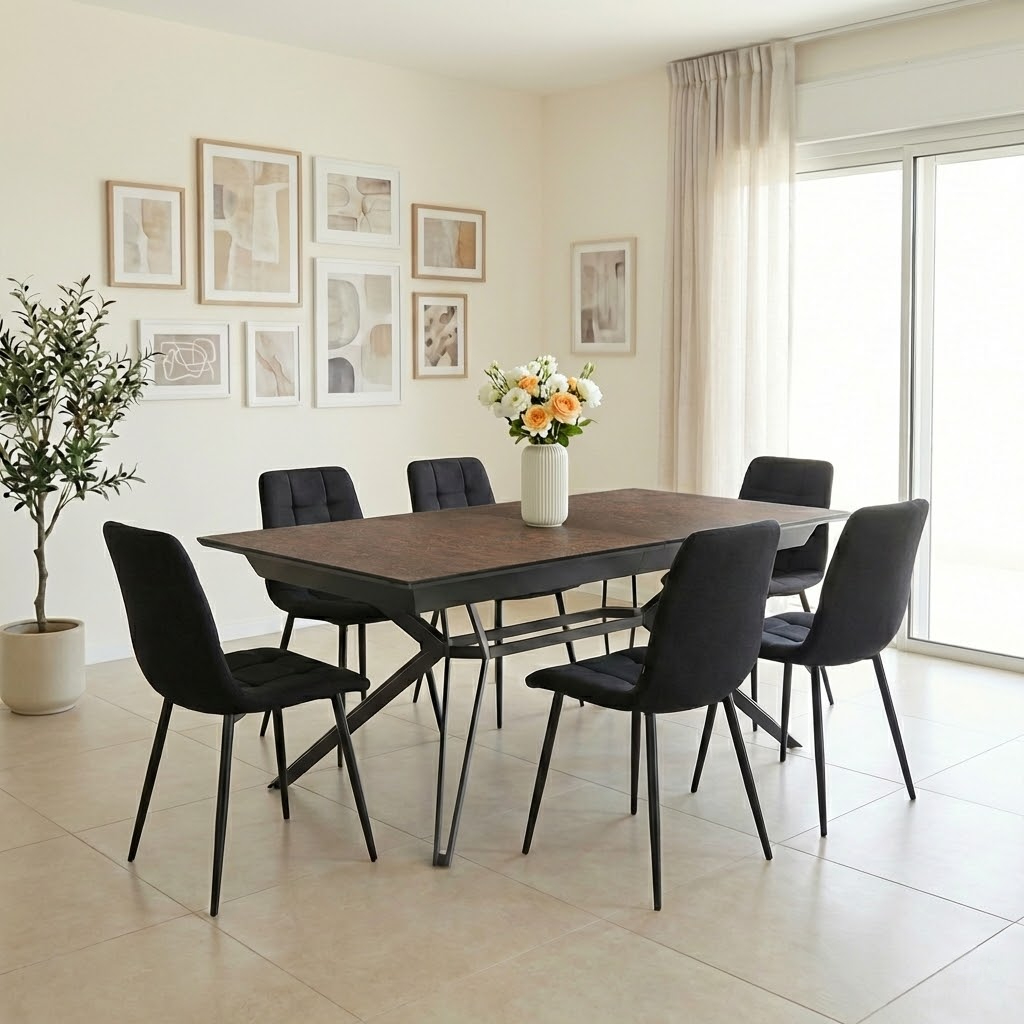 שולחן האוכל נוברטו הוא פתרון מושלם לאירוח גדול, המשלב עיצוב מודרני מרשים עם פונקציונליות מתקדמת. השולחן עשוי MDF בציפוי למינציה איכותית, עמידה ל־חום ושריטות, ומתאימה לשימוש יומיומי אינטנסיבי. אורכו 2.00 מ’ וכולל 4 הארכות של 50 ס"מ כל אחת, כך שניתן להאריך אותו עד לאורך מרשים של 4.00 מ’ – אידיאלי לאירוח משפחתי רחב ולאירועים מיוחדים.