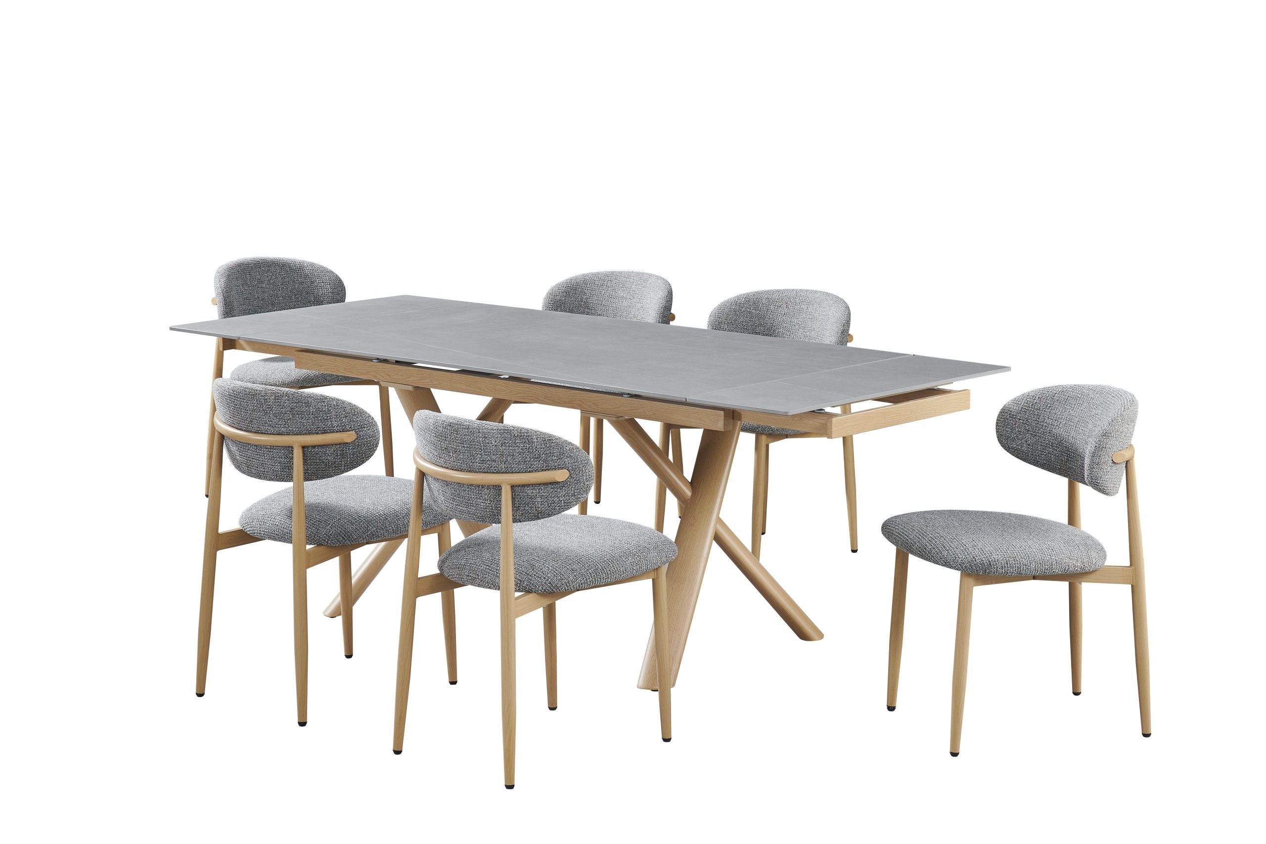 פינת אוכל דגם ראדו אפור + 6 כסאות סנדרין – 10 סועדים