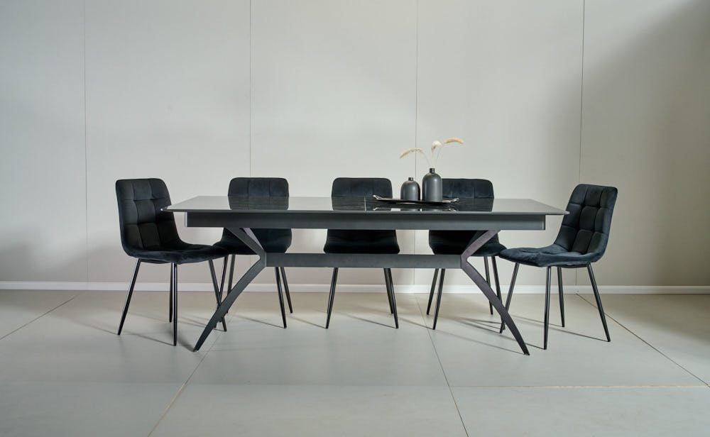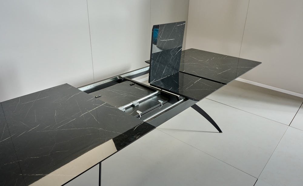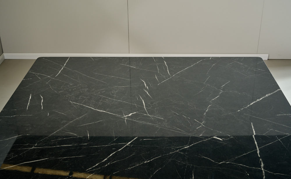 פינת אוכל מלבנית דגם קונקורד דמוי שיש שחור מבריק מעוצב עד הפרטים הקטנים ביותר בעל 100% ברק.