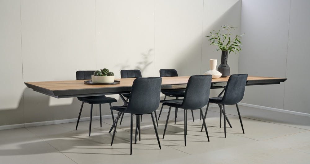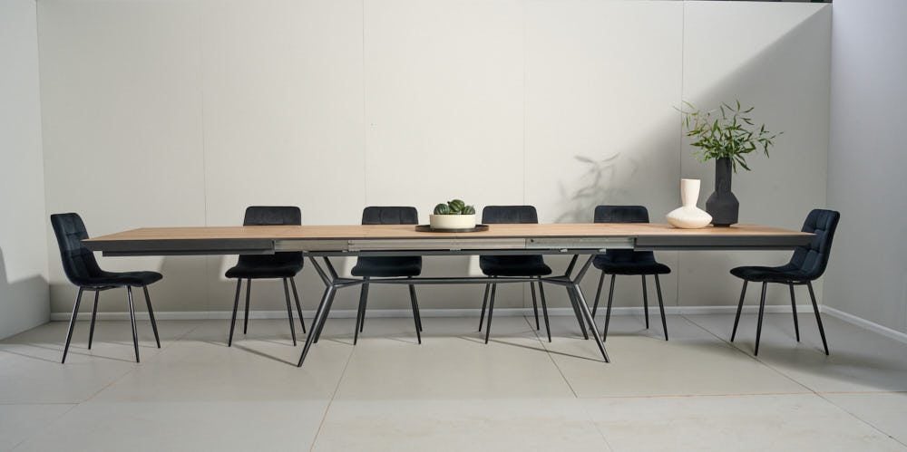 פינת אוכל מלבנית דגם לארגו דמוי עץ טבעי + 6 כסאות דגם סנדרין – 18 סועדים