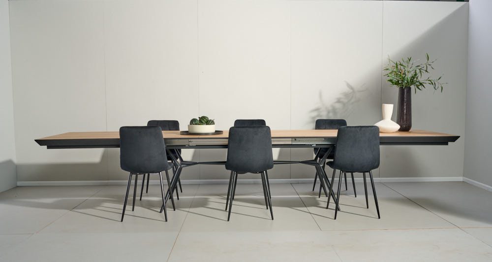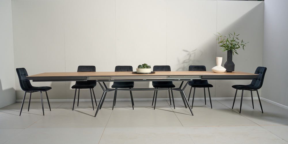 השולחן באורך 2 מ’ ובעל 4 הארכות של 50 ס”מ נוספים ואורך מלא של 4 מ’.
