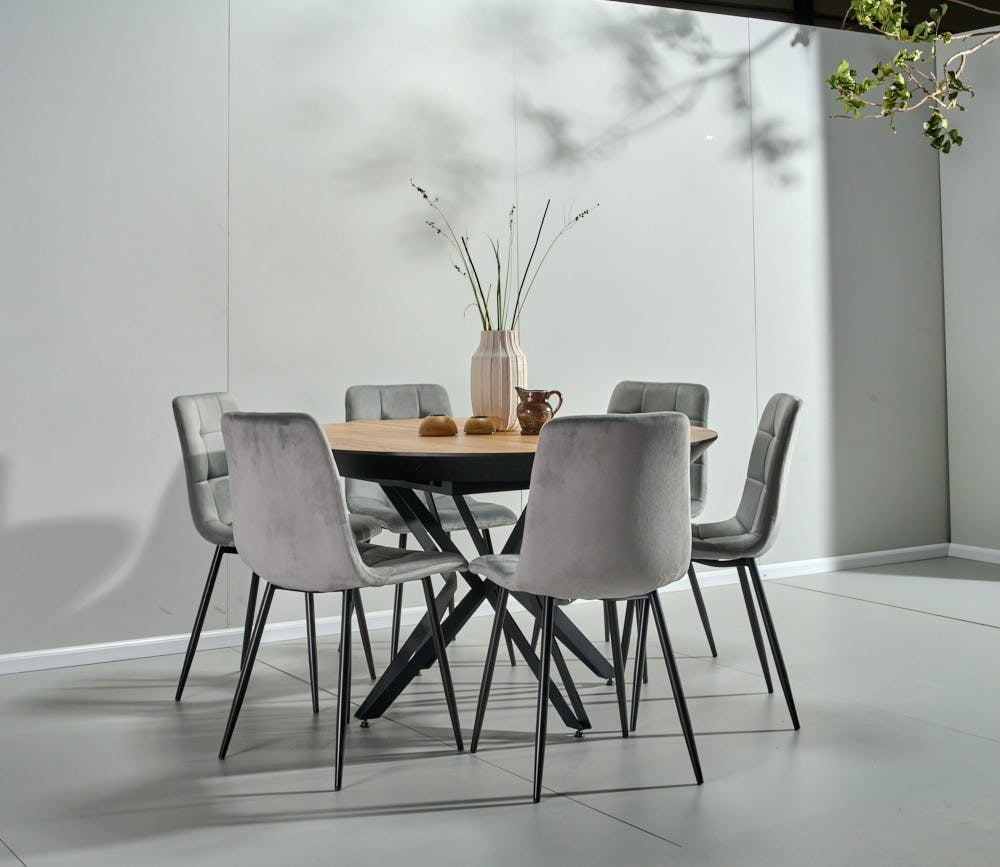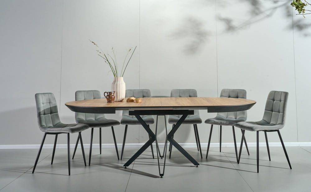 פינת אוכל עגולה נפתחת דמוי עץ טבעי דגם רפאלו + 6 כסאות – 10 סועדים