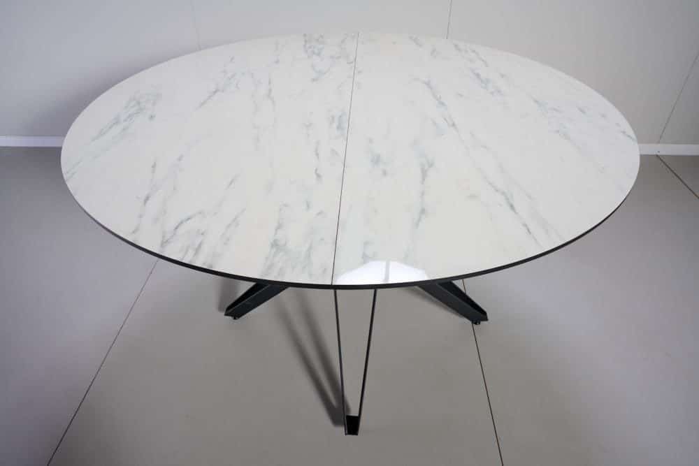פינת אוכל עגולה נפתחת דגם רפאלו בגימור דמוי שיש לבן מבריק מעוצב עד הפרטים הקטנים ביותר בעל 100% ברק.
