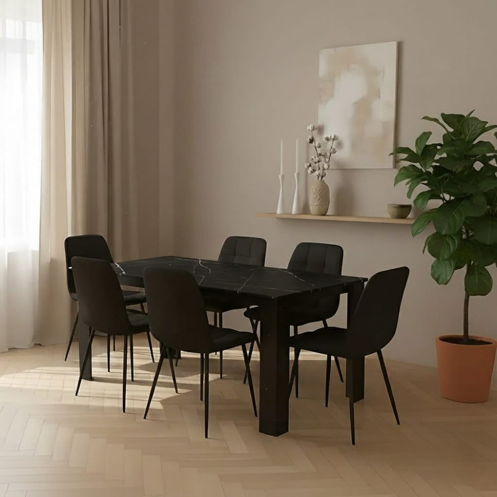 פינת אוכל קרמיקה דמוי שיש שחור דגם טאירון + 6 כסאות דגם סנדרין – 12 סועדים
