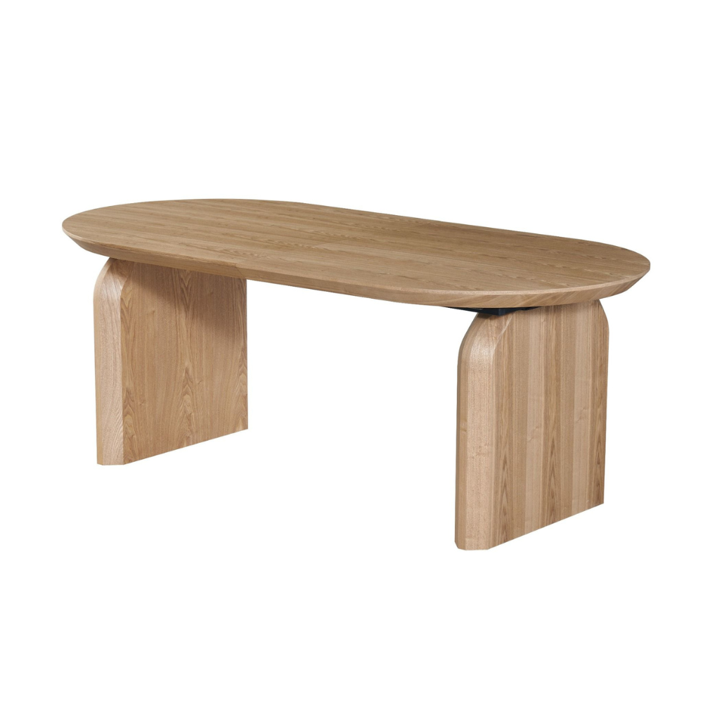 שולחן אוכל דגם טומסו אלון טבעי הוא פריט מרכזי בעל נוכחות מרשימה, המשלב עיצוב רך וזורם עם איכות בנייה גבוהה במיוחד. פלטת השולחן עשויה עץ אלון טבעי, המדגיש את טקסטורת העץ ומכניס חמימות ואלגנטיות לכל חלל אוכל. גם רגלי השולחן עשויות עץ אלון טבעי, בעיצוב ייחודי ומעוגל שמעניק יציבות גבוהה ומראה פיסולי ויוקרתי.