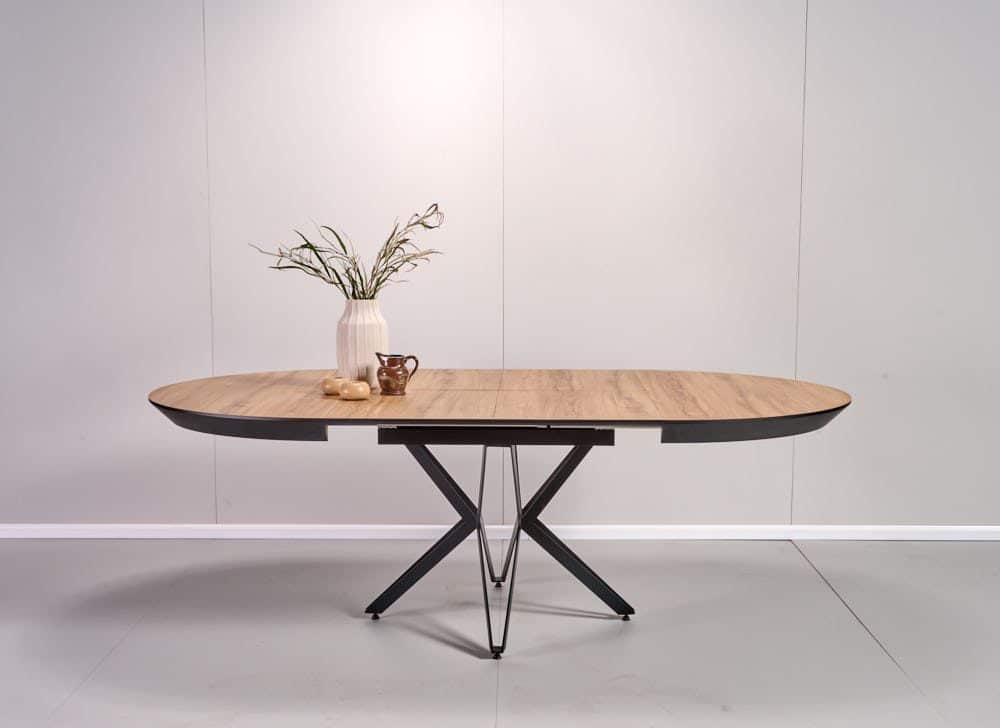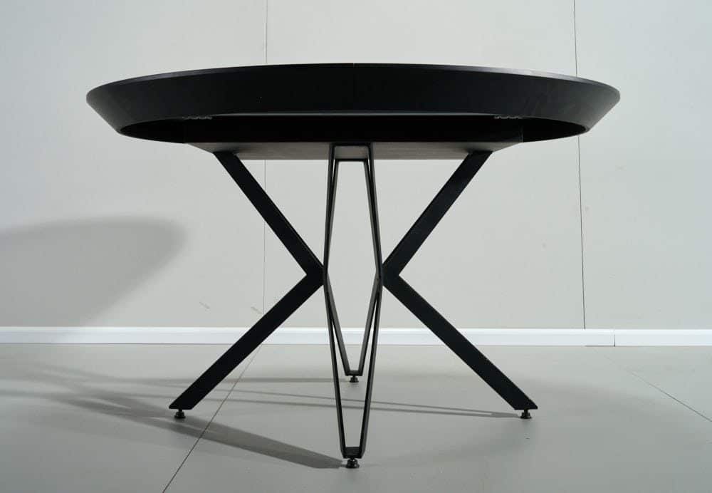 השולחן בקוטר 1.30 מ’ בעל 2 הארכות של 48 ס”מ נוספים וקוטר מלא של 2.26 מ’.