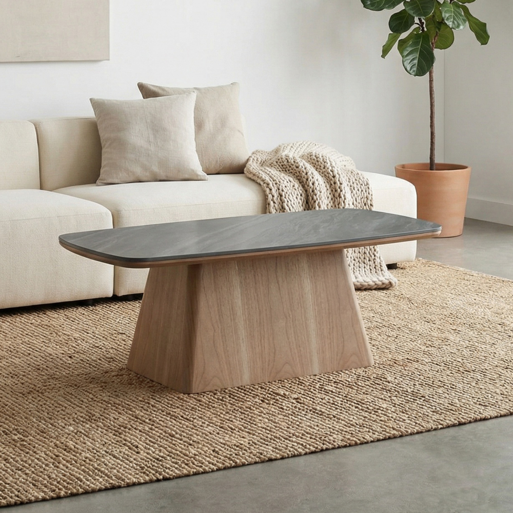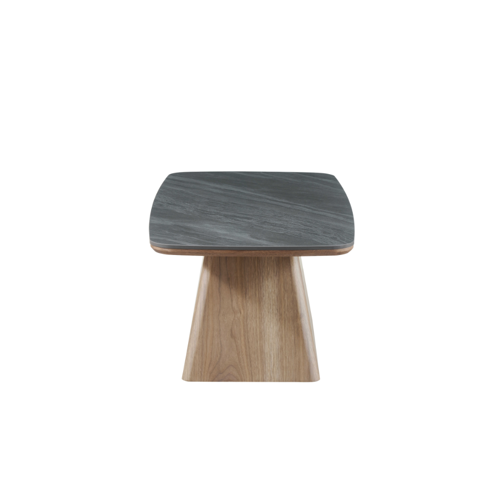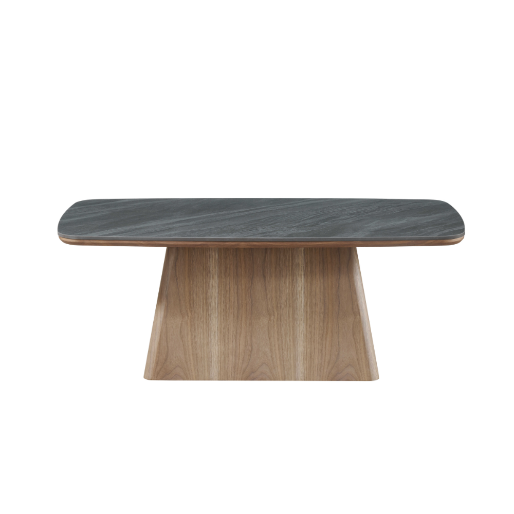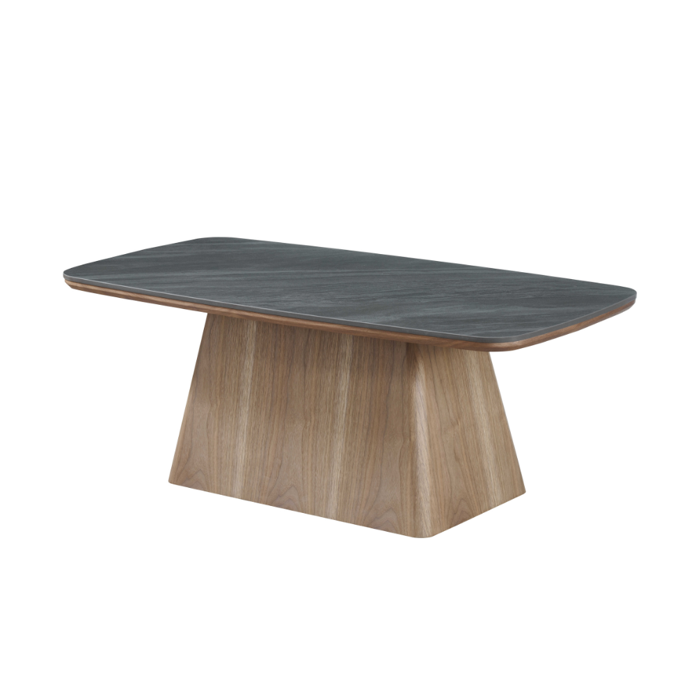 שולחן סלון דגם גליס – קרמיקה אפור כהה בציפוי אגוז אמריקאי